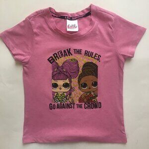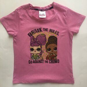 Girls LOL Surprise Pink Shirt Size 6 L.O.L. T-Shirt Break the Rules Go Crowd