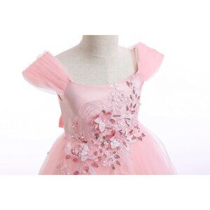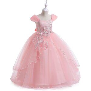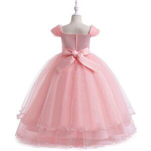 🆕Girls Light Pink Polyester Flower Girl Lace Cold Shoulder Sequin Wedding Gown