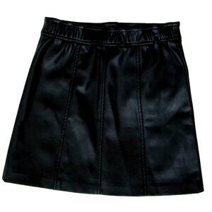 Stylish and edgy black faux leather mini skirt for girls. In excellent condition, made from very soft material that’s comfortable to wear. Features snap buttons down the front that are easy to open and close.