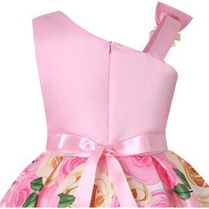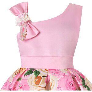 🆕Girls Pink Cotton Blend Flower Dress Sleeveless Off-Shoulder Beaded Bow 2-10Y