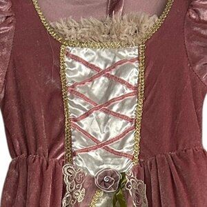 Girls Pink Velvet Medieval Princess Dress Halloween Costume Size 5/6 Lace Satin