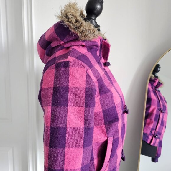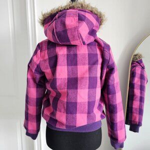 Girls Pink/Purple Plaid Fur Lined Hooded Winter Jacket, Size L