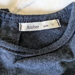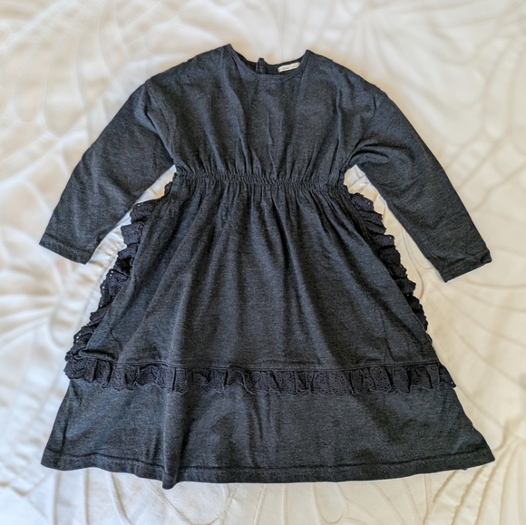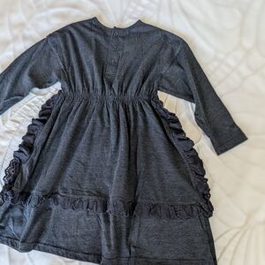 Great condition feminine dark-grey dress with lots of ruffle details, it's from the brand Amber and sized a girl's 11, 26cm across the waistband, 41cm for the shoulders, 29cm long sleeves, and 61cm long overall.