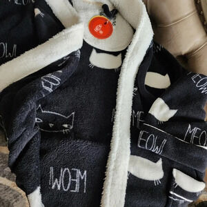 Girls Set Robe and Slippers Meow Black Cat size 6 9 XL