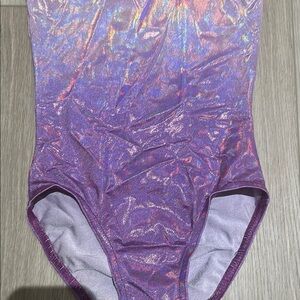 Girl's Shimmering Purple Kids Leotard can fit 10-12 depending on built