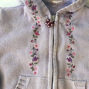 Girls Size 3 Y2K Hoodie Cotton Zip Sweater Butterfly Floral Purple Embroidered