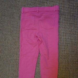 Girls size 4T Carter's pant-style leggings. Black mark = initials crossed out. True colour indicated in second photo (close up of size...the pink is more of a coral pink than a hot pink). Pairs well with the size 4T shirts on this website (butterflies, dogs, amazing sister).