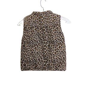 Girls Size 6X Puffer Vest Brown Leopard Print Pockets Pink Snaps Fleece Lined