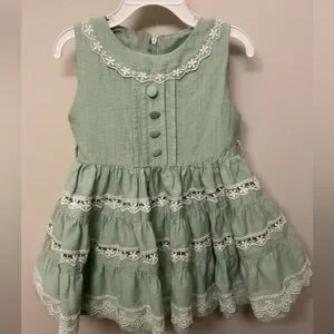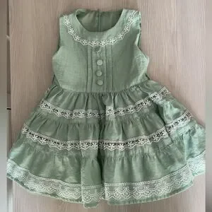 This charming green kids dress features delicate lace detailing, perfect for any special occasion. Crafted with care, it offers both style and comfort.