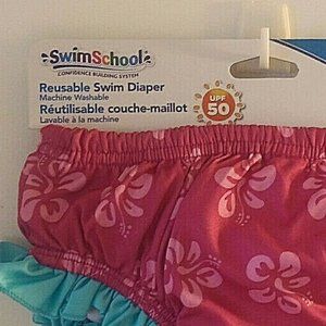 Swim School Reusable diaper. Save money buying this diaper once rather than disposable ones endless times! Level 1, 22-30 lbs ( 10-15 kg ). UPF 50. Triple layer protection. Machine washable, just throw them in with any load! Quick drying polyester. Snug fit for comfortable wear.