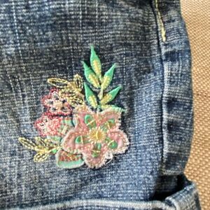 Pumpkin Patch Denim Embroidery Shorts- adjustable waist - good condition- 65% cotton- 33%- Poly- 2%- Elastane