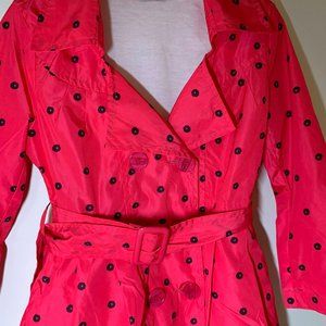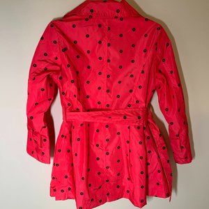 Double breasted buttons, sleeve straps. 2 front pockets.