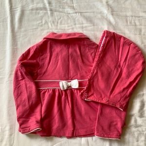 Pink unlined jacket with detachable collar and pretty white bow and trim at back. Great condition.