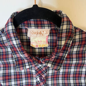 Vintage 70s - 80s Union Made Shirley K Girls' plaid shirt dress.