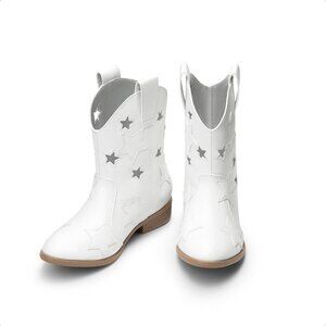 Girls White Cowgirl Mid Calf Glitter Western Boots Toddler Star Riding Shoes