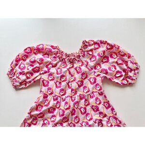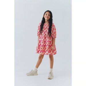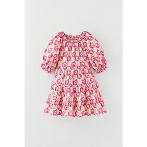 Girls' ZARA Pink Floral Cotton Poplin Puff Sleeve Tiered Dress, Size 13-14