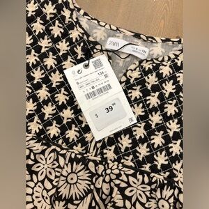 Girls Zara Black and Cream Patterned Dress Size 9