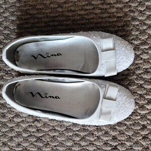 Girls ballet ribbon bow flats with white sequins 3M Eur34