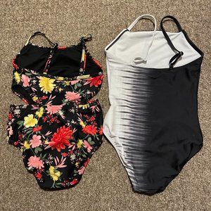 Three girls bathing suits. 2 old navy, 1 speedo.