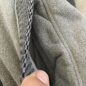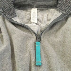 One spacious hoodie pocket and a half zip zipper. Fuzzy inside and a thick material for extra warmth. Feels like your wearing a weightless blanket.