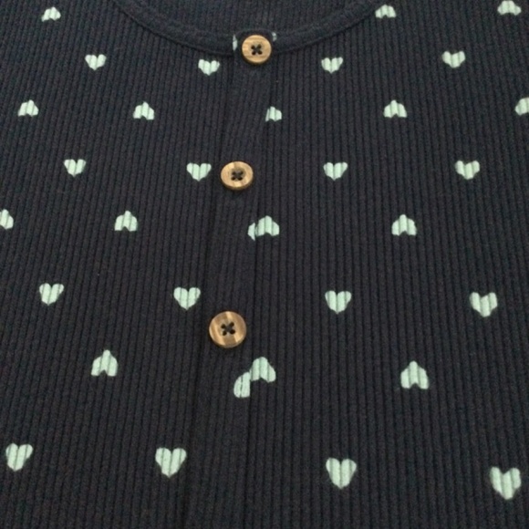 Perfect for any day! Stretchy and comfy. Fake button up design for more style (doesn’t actually button up). Cute heart details.