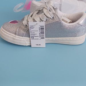 Adorable silver sparkle sneakers with various coloured puffed hearts. Brand new with tags never worn.