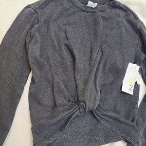 New with tags zella charcoal grey lightweight sweatshirt with knotted front detailing
