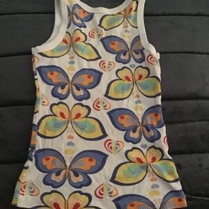 Girls white tank top from the Children’s Place with multicolored patterns and designs (hearts and butterflies)