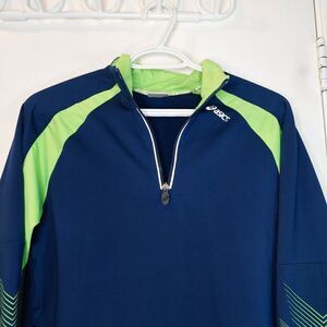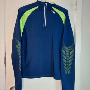 Girl's Asics Running Track Jacket Blue with Green Large 14-16