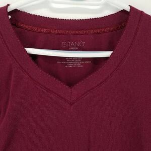 Gitano Womens Burgundy Top Short Sleeve V-Neck Stretch Size 18/20W Cotton Blend