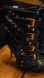 Sleek black boots with gold buckle accents. Fringe detailing adds flair. Perfect for a bold look. The heel is metal so it will last forever. The bottom was also fixed to last. One of the zippers doesn't go fully down, but it fits perfectly.