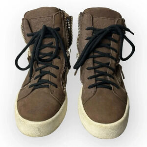 Giuseppe Zanotti Brown Leather Donna Hi-Top Swarovski Crystal Sneakers 37