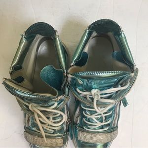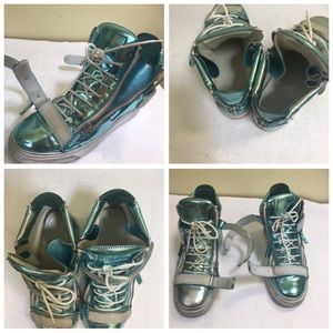 Giuseppe Zanotti Donna Metallic Patent Leather High Top Sneakers Shoes Crystals
