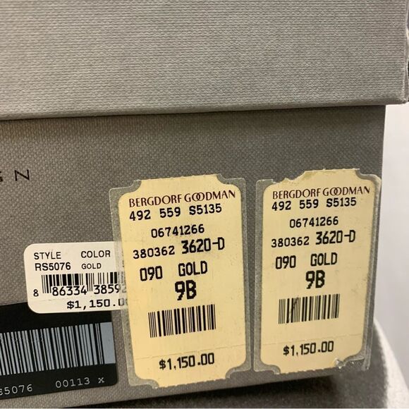 Excellent used condition. Minor signs of wear throughout. Very faint markings throughout. Micro creasing on front of foot. Metallic