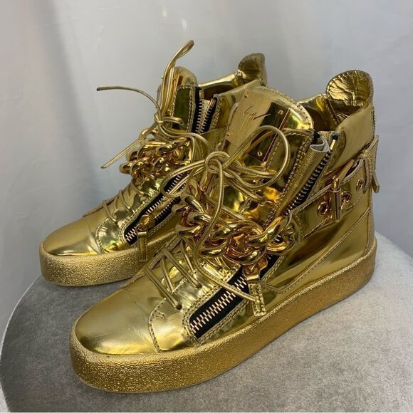 Giuseppe Zanotti London Mirrored Leather Chain High 'Vegas Gold' hi-top sneaker Sz 39