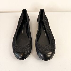 Giuseppe Zanotti Malika Black Leather Glitter Cap Toe Ballet Flats