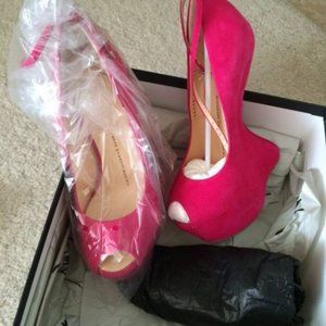 Sculpted Jem Heels Fuchsia; suede pump from Giuseppe Zanotti Design,