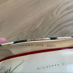 Step into high fashion with these stunning Giuseppe Zanotti black patent leather peep-toe heels. With their sleek silhouette and signature Italian craftsmanship, these designer stilettos are a showstopper โ perfect for evening events, weddings, and nights out.