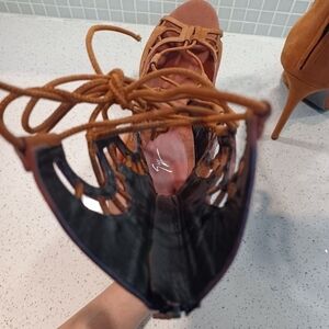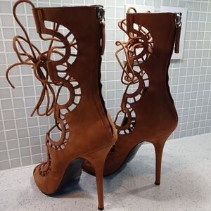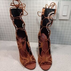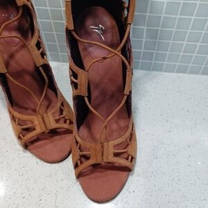 Giuseppe Zanotti lace up scalloped gladiator suede boots sandals heels