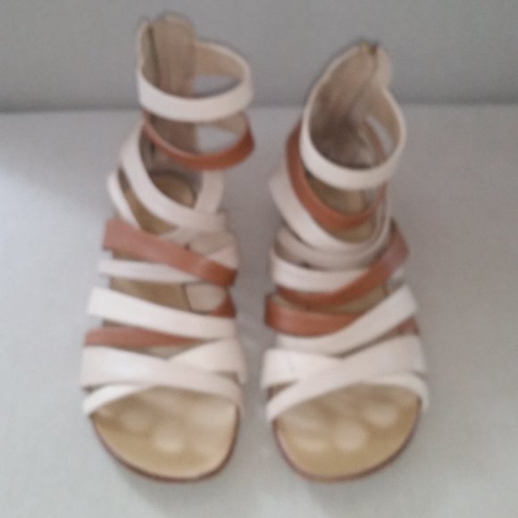 Giuseppe Zanotti strappy cream and tan leather sandals. Made in Italy. Size 36 1/2 Italian 6 1/2 US Good pre=-loved conditon.