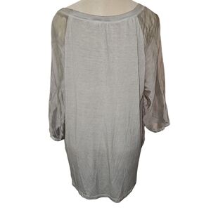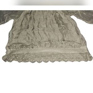Made in Italy Silk Blouse Lace Detail Sequins 2 Layers in Front Sheer arms GREY Giusy Large Prontomoda Giusy Gray Pure Silk Lace Accent Tunic Blouse