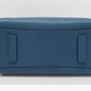 Authentic Givenchy Antigona Small Bag in beautiful blue grained leather. Excellent condition, like new! Only worn a few times. Structured grained goatskin top handle bag with shoulder strap. Logo plaque at face. Leather bumper tabs at base. Zip closure with zippered pocket and two pockets in interior. Canvas lining and silver tone hardware. Retails for $3,000 before tax