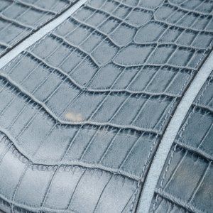 The elegant Givenchy Antigona clutch crafted from croc-stamped calfskin leather in a aqua blue to a chic envelope silhouette. This clutch flaunts the brand name in metallic silver-tone lettering at the front flap and secures at a slide-in slot. The interior features a small front compartment and a large main compartment segmented in two and lined with beige grosgrain canvas.
