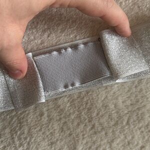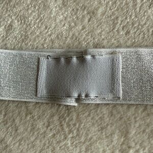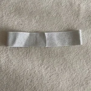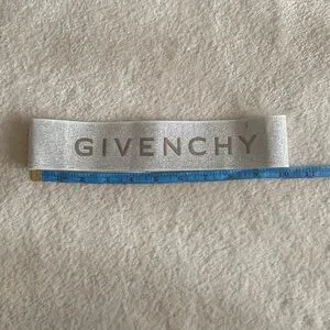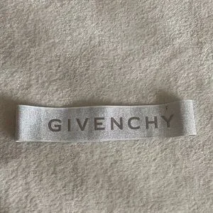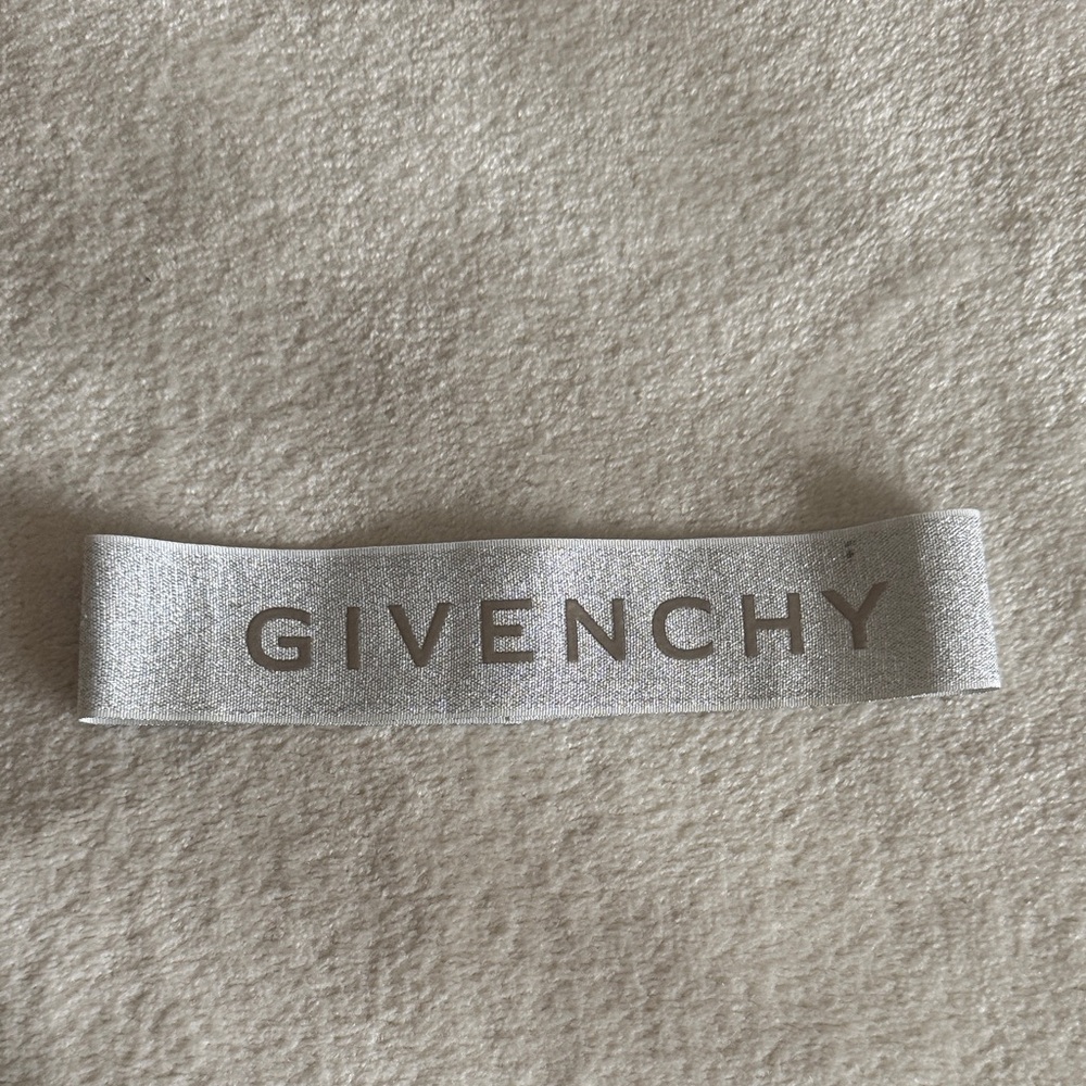 Givenchy Metallic ribbon with logo in silver patching. Perfect for gifting of decor. Could easily be up cycled into a headband or something fun.