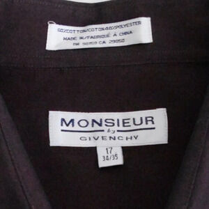 "Elevate your formal attire with the sophistication of the Givenchy Monsieur Deep Purple Cotton Blend Button Down Dress Shirt in Size 17 1/2. Crafted with meticulous attention to detail and luxurious cotton blend fabric, this shirt epitomizes refinement and elegance.