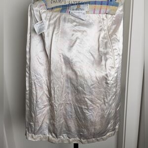 Rare Vintage mid 90s, Made in Paris France, Fall Fashion, Silky Cream Acetate Lining, Side Zipper with Hook & Eye Closure, Great Vintage Condition, some colour bleed into the white I think (might be on purpose), Size 42, Waist-14 1/2, Length-21.