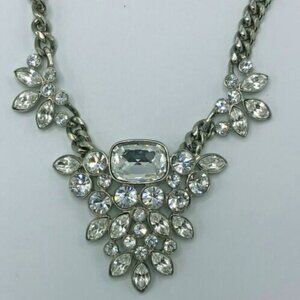 Givenchy Signed Large Crystal Silver-Tone Chain Link Collar Runway Necklace