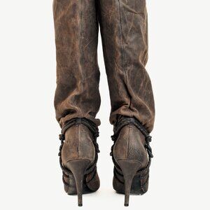 Givenchy Taupe Grey Wax Textured Leather Knotted-Rope Heeled Boots