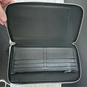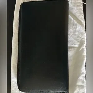 Beautiful Travel wallet, lambskin leather. Can fit a passport and most phones inside. Never used. Bought from Holt Renfrew. The last pic is comparing sizes to a regular wallet.