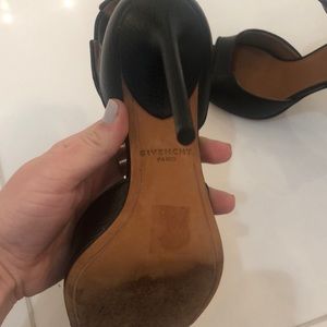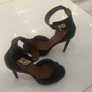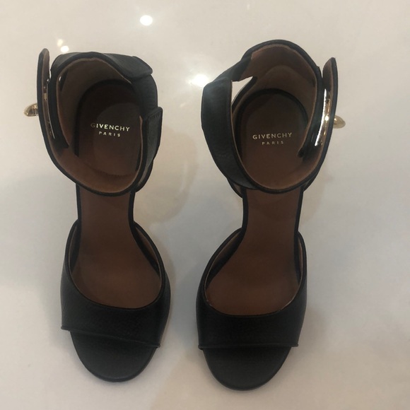 Black Givenchy heels with gold detail. Im great condition, a little mark on the bottom strap of one heel. Bought a few years ago, worn once. Size 35